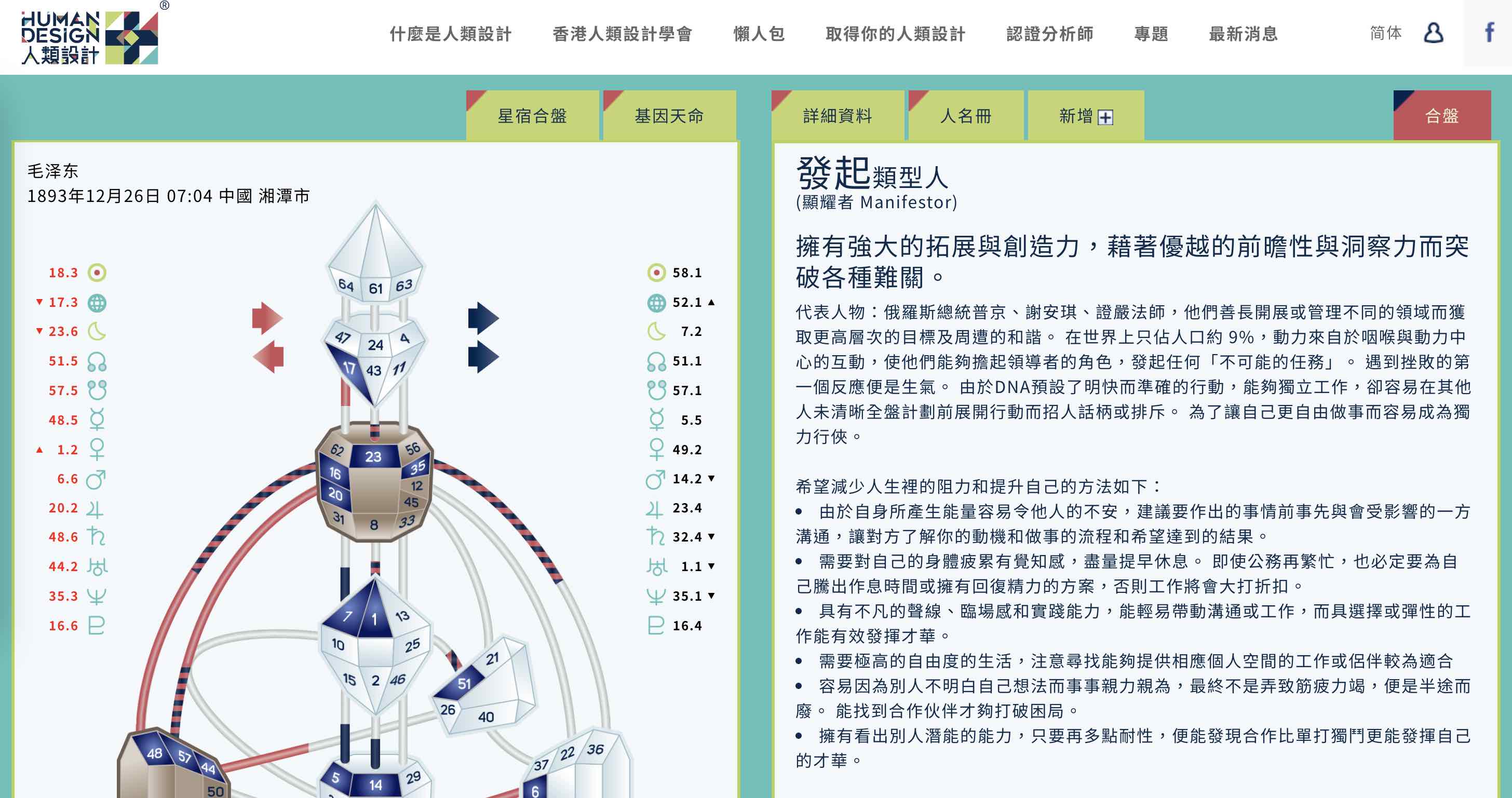登入网站 www.humandesign.plus ,在上方输入姓名和出生资料,便可以制作出你的人类设计图,请参阅有关免费解说作个人天赋的初步了解(日后会有付费说明)。